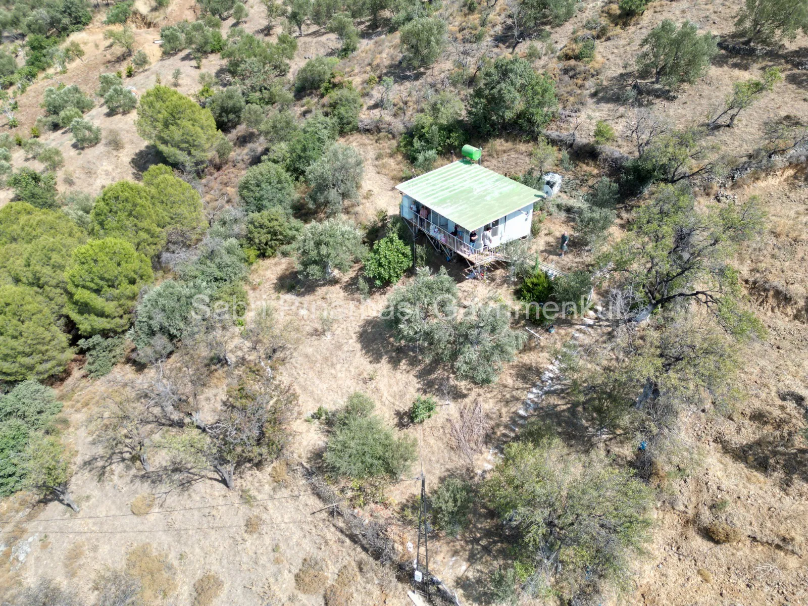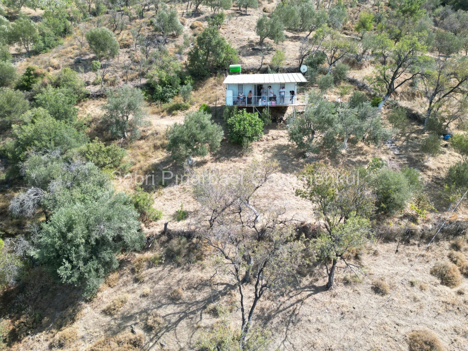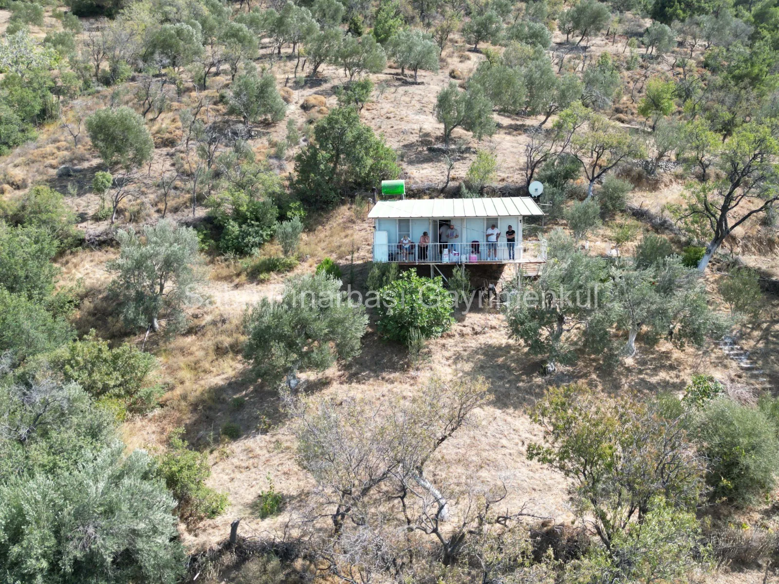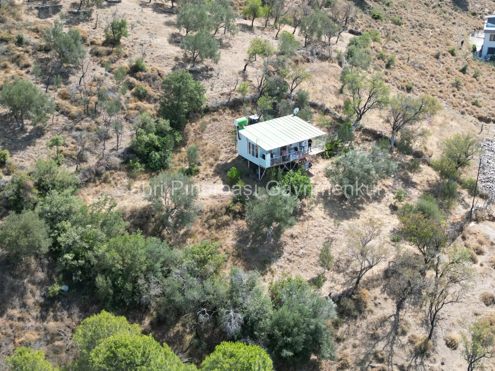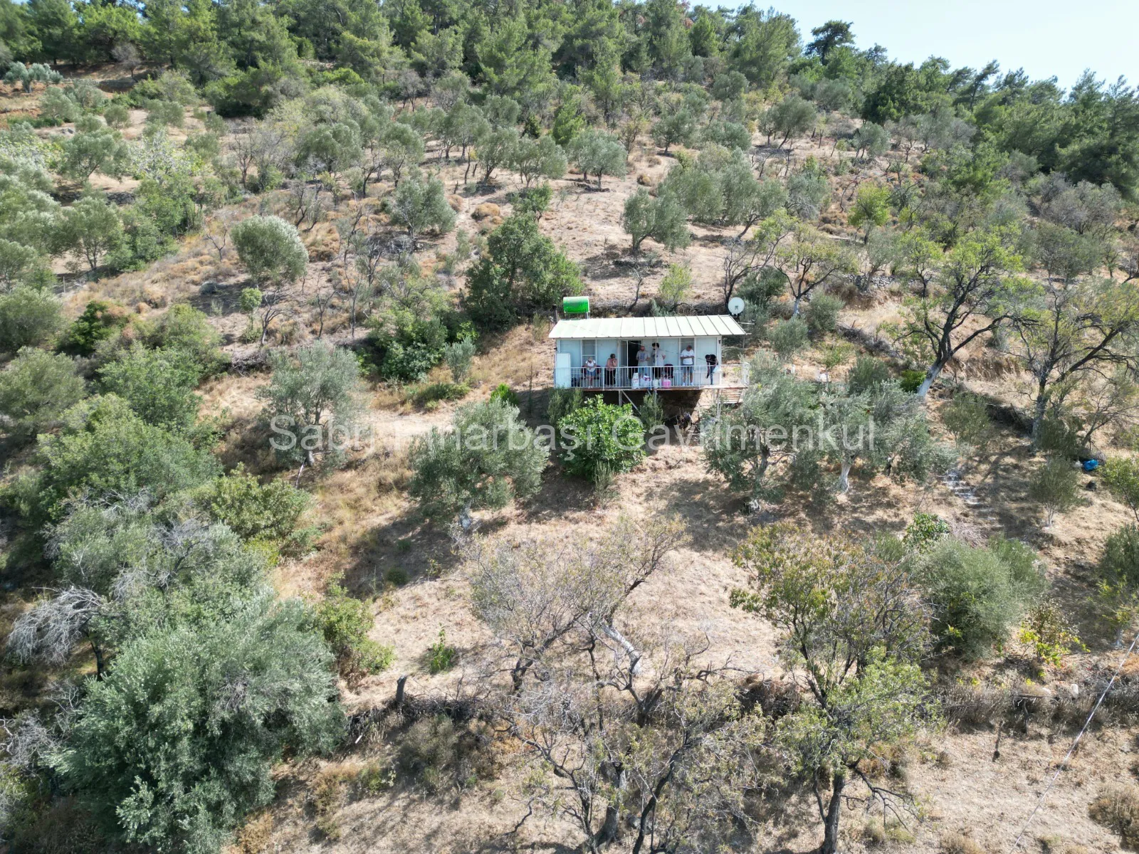 Bahçede 25 adet zeytin ağacı ile birlikte incir, nar, armut, badem gibi farklı meyve ağaçları yer almaktadır.